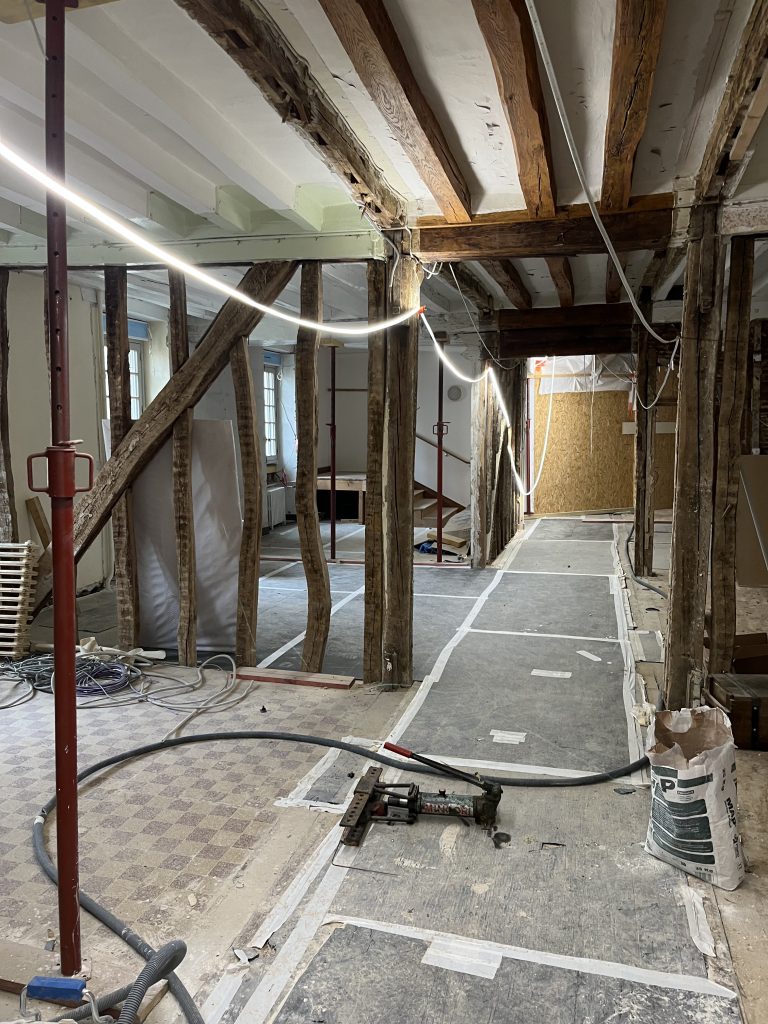 Après les renforcements de structure et remplacement de certains planchers, les corps d’états secondaires ont débuté leurs travaux.